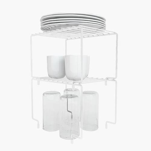 Este organizador é feito em aço carbono, garantindo resistência e durabilidade. Seu acabamento em pintura epóxi confere um visual moderno e elegante. Além disso, sua cor branca combina com qualquer estilo de decoração.