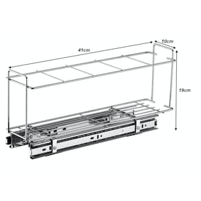 Com medidas compactas de comprimento 41cm, largura 10cm e altura 19cm, este porta garrafas/latas deslizante se encaixa perfeitamente em diversos tipos de armários. Fabricado com aço cromado de alta qualidade, garante durabilidade e resistência para o uso diário.