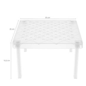Pequenos cuidados com seu lar fazem toda a diferença. #Prateleira Empilhável #Fácil de Montar #Organizadora Garantia: 1 ano / Peso: 235g / Cor: Branco, Natural, Cinza, Verde Menta / Ref: PO200 Dimensões da base: 25cm (C) X 25cm (L) Dimensões das hastes: 2cm (C) x 1cm (L) x 14,5cm (A) Dimensões Montada: 25cm (C) X 25cm (L) x 15,5cm (A) Cuidados: Não lavar com materiais abrasivos. Material: - Polipropileno: Material com alta resistência a impactos e ao calor. Não transfere odor, nem gosto aos alimentos. Atóxico, pode entrar em contato com alimentos. Resistência à água fervente, suportando até 150° C. Esta prateleira organizadora é ideal para quem procura organização e praticidade. Com ela você pode ampliar o seu espaço, pois é um suporte componível, ou seja, pode empilhar uma sobre a outra, basta somente ajustá-la no lugar desejado. Além de ser fácil de montar as prateleiras organizadoras de armário possuem tons neutros no qual agrega um aspecto moderno em sua cozinha e evita o uso de parafusos ou buchas.