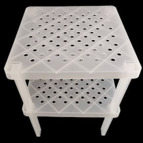 Garantia: 1 ano / Peso: 235g / Cor: Branco, Natural, Chumbo, Verde Menta / Ref: PO200 Dimensões da base: 25cm (C) X 25cm (L) Dimensões das hastes: 2cm (C) x 1cm (L) x 14,5cm (A) Dimensões Montada: 25cm (C) X 25cm (L) x 15,5cm (A) Cuidados: Não lavar com materiais abrasivos. Peso suportado: até 5kg.