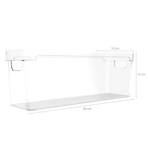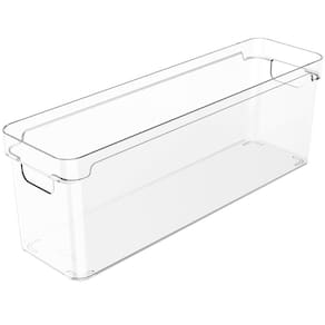 Organizador De Armário Retangular 30x10x13cm Caixa Organizadora Transparente Com Alças Clear OU. #Organizador Multiuso Para Despensa Armário Geladeira #Caixa Organizadora Transparente Com Alças Laterais #Organizador Linha Clear OU Garantia: 90 dias / Peso: 351g / Cor: Natural / Ref: OC500NT Dimensões: 30cm (C) x 10cm (L) x 13cm (A) Dimensões Área De Uso: 28cm (C) x 9cm (L) x 12,5cm (A) Conteúdo: 01 Organizador Retangular Empilhável; Limpeza e Cuidados: - Lavar com água e sabão neutro utilizando esponja macia, seguido de pano seco; - Não utilizar produtos químicos ou abrasivos na limpeza. Evitar batidas. Detalhes Do Produto: - Possui design modular que permite o empilhamento e encaixe perfeito; - Possui alças laterais embutidas; - Não suporta máquina de lavar; - Não suporta micro-ondas; - Livre de Bisphenol A; - Não suporta freezer; - Suporta geladeira. Material: - Poliestireno: Material translúcido com baixa resistência a impactos. Ótima transparência e alto brilho. Não transfere odor, nem gosto aos alimentos. Atóxico, pode entrar em contato com alimentos. Na hora de manter a organização da sua casa conte com o Organizador de Armário Retangular da Linha Clear. Confeccionado em material resistente, transparente e com alças confortáveis que facilitam o transporte, a caixa organizadora empilhável multiuso vai ser o seu ajudante número um na hora de manter cada coisa em seu lugar. O design modular foi especialmente desenvolvido para que você aproveite ao máximo todos os espaços no seu ambiente. Empilhe, encaixe e crie diversas composições.