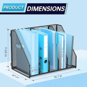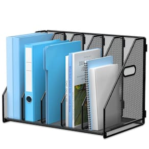 organizador de pastas vertical - Porta-revistas multifuncional: o rack de arquivos MINDEPOT pode conter revistas, arquivos, fichários, livros e uma variedade de materiais de escritório. Nosso organizador de arquivos vertical é a solução prática perfeita de armazenamento para casa, escritório e escola. - Organizador de desktop tudo-em-um: este organizador de livros com 5 espaços de uso vertical pode organizar seu espaço de trabalho com eficácia, fornecer acesso fácil a itens importantes e aumentar a eficiência do trabalho. - Fácil montagem: o suporte de arquivo vertical pode ser montado com sucesso em apenas alguns minutos. Vem com instruções ilustradas, não precisa se preocupar com montagem e uso. Design de alça de transporte, fácil de transportar em qualquer lugar. - Organização de escritório de alta qualidade: nossos organizadores de mesa são feitos de malha metálica resistente, que não é deformada pelo uso a longo prazo e tem uma melhor capacidade de carga em comparação com o porta-fichário de material plástico. - Economia de espaço: 16,1 “L x 10 “W x 11,6 “H. A estrutura espacial vertical economiza espaço. Divisões claras permitem categorizar os itens de forma clara e manter a área de trabalho arrumada.