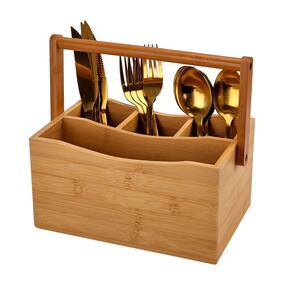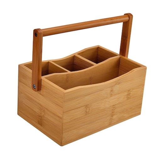Organizador de Bambu para Talheres Utensílios 4 Divisórias