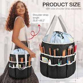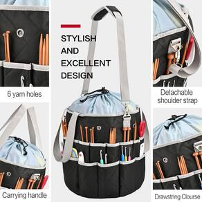 yookee home Organizador de bolsa de crochê - [Alta qualidade] Nossos sacos de fio são feitos de qualidade premium, garantindo sua durabilidade, a estrutura hexagonal mantém sua forma em boas condições e sem cair, não cede em todos os seus fios de novelo - Fácil de transportar: a alça é perfeita para carregar à mão ou pendurar no pulso enquanto tricota ou crochê. A alça de ombro ajustável removível oferece outra opção para carregá-la no braço, tornando seu artesanato fácil e agradável - Capacidade extra grande: as dimensões do organizador de fios são 32,8 x 32 cm, cabe mais de 40 novelos que pesam 48 g, permitindo que você armazene convenientemente seus acessórios de tricô, tricotar alguns pequenos projetos simultaneamente não é um problema - [Design conveniente] e a parte superior tem um fecho de cordão e design de abertura ampla, fechando firmemente o saco de fios para evitar que o fio caia e mais fácil de levar seus acessórios de crochê. 1 bolso principal para armazenamento de fios, 6 bolsos internos mantêm seu fio livre de emaranhados, 23 bolsos externos para acessórios de crochê, kits de crochê e agulhas de tricô - Ótima ideia de presente: a bolsa de armazenamento de fios pode guardar tudo o que você pode usar, pode ajudá-lo a criar trabalhos mais facilmente. Adequado tanto para iniciantes quanto para entusiastas de tricô. É o melhor presente para o Natal, Dia das Crianças, Aniversário, Dia dos Namorados, Dia de Ação de Graças, Dia das Mães e outros festivais. Oferecemos um serviço de 1 ano. Se precisar de ajuda, envie-nos uma mensagem, responderemos em 24h