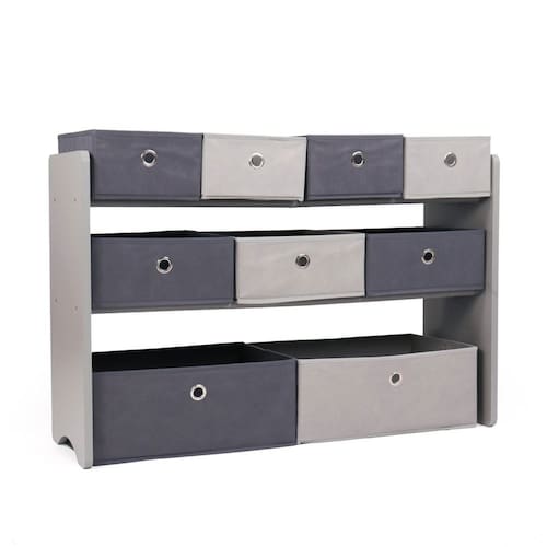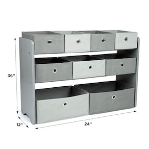 Humble Crew Organizador de brinquedos infantil com 9 caixas de tecido de armazenamento, cinza - Caixas de armazenamento de tecido removível: o organizador de brinquedos Humble Crew inclui 9 caixas de tecido removíveis e dobráveis — 2 grandes, 3 médias e 4 pequenas — facilitando a organização e limpeza dos brinquedos. Ideal para armazenamento de brinquedos infantis e necessidades de sala de jogos. - Design moderno e elegante: com um acabamento de madeira cinza e uma mistura de caixas de tecido cinza escuro e claro, este organizador de armazenamento de brinquedos para crianças adiciona um toque elegante e moderno a qualquer cômodo - uma adição versátil para quartos, berçários e salas de estar. - Solução de economia de espaço: medindo 91 cm L x 30 cm P x 61 cm A, este organizador de brinquedos compacto maximiza o armazenamento enquanto minimiza o uso do espaço. É uma escolha ideal para armazenamento de brinquedos em salas pequenas, gerenciando efetivamente a bagunça nos quartos das crianças e áreas de brincadeira. - Construção durável: construída com uma estrutura de madeira resistente e hastes de aço para prateleiras, esta prateleira de armazenamento de brinquedos com compartimentos pode suportar até 9 kg por nível. Oferece uma solução robusta e confiável para organizar brinquedos, livros e muito mais. - Características de segurança incluídas: vem com um kit de âncora de parede anti-ponta e possui cantos arredondados para maior segurança. Este organizador de brinquedos é projetado para garantir uma solução de armazenamento segura, estável e adequada para crianças para brinquedos e outros itens essenciais.
