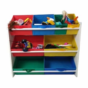 Utiliza um método montessoriano que ajuda na educação e organização da criança. De uma forma lúdica, a criança começa a criar conceitos de organização, além de deixar o ambiente colorido, alegre e decorado, aumentando a sensação de lazer.Dimensões: altura 83 cm comprimento 88 cm profundidade 30 cmMaterial: estrutura lateral produzida com mdp branco 15mm.Hastes em madeira, pinos revestidos de pvc , caixas de tnt 80 , estrutura de cadboard e poliéster.Quantidade de caixas:04 caixas grandes de 42 largura x 14 altura x 28 profundidade cm02 caixas médias de 28 largura x 14 altura x 28 profundidade cm02 caixas pequenas de 14 largura x 14 altura x 28 profundidade cmCores das caixas: vermelho, amarelo, azul e verde.Obs.: item exclusivo das cores acima, porém podendo variar composição entre elas.Dimensões da caixa fechada:Altura 8 cm comprimento 36 cm profundidade 89cm peso 8,7 kg