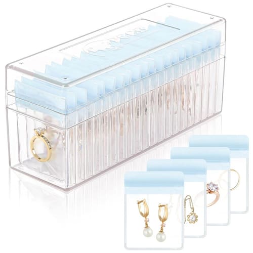 Esta caixa organizadora de joias é feita de acrílico durável de alta qualidade, com um design de tampa transparente que exibe elegantemente suas joias, mantendo-as livres de poeira e à prova d'água. Inclui 20 bolsas de joias de PVC portáteis feitas de material espesso e transparente que resiste a rasgos e evita que as joias oxidem, garantindo um armazenamento seguro e conveniente (lembrete: o tamanho da bolsa de joias é de 8 x 6,3 cm, verifique se cabe nas suas joias antes de comprar). Com 20 compartimentos fixos, este porta-joias mantém suas peças organizadas e facilmente acessíveis, eliminando colares emaranhados e brincos extraviados. Seu design compacto mede 21,3 x 7,1 x 9,7 cm, facilitando o armazenamento em gavetas ou levar com as bolsas de joias de PVC, o que o torna um item essencial para viagens. Seja para sua mãe, esposa, namorada, filha, amiga ou colega, este organizador de joias é um presente atencioso e prático, combinando elegância e funcionalidade para qualquer mulher especial em sua vida. - ? Construção acrílica durável: feito de acrílico resistente de alta qualidade, nosso organizador de joias transparente é feito para durar, oferecendo proteção confiável para suas joias preciosas. Seu design transparente com tampa não apenas mostra suas joias, mas também as mantém livres de poeira e à prova d'água. - ? 20 bolsas portáteis de PVC: as 20 bolsas de joias portáteis de PVC incluídas são projetadas para durabilidade e conveniência. Seu material espesso e transparente resiste a rasgos e sela com segurança para evitar que as joias oxidem. (Lembrete: o tamanho da bolsa de joias é de 8 x 6 cm. Para o seu prazer de compras, verifique se o tamanho de suas joias é adequado.) - ?Armazenamento seguro e organizado: com 20 compartimentos fixos, nosso organizador de porta-joias garante que suas joias permaneçam organizadas e facilmente acessíveis. Chega de colares emaranhados ou brincos extraviados; tudo tem o seu lugar. - ? Compacta e adequada para viagens: medindo 21,3 x 7 x 9,7 cm, nossa caixa organizadora de joias cabe perfeitamente em gavetas ou pode ser usada para armazenar suas peças favoritas na bolsa de joias de PVC, pronta para pegar e levar. É um item essencial de viagem para manter suas joias seguras e organizadas em movimento. - ?Presente perfeito para ela: seja para sua mãe, esposa, namorada, filha, amiga ou colega, nosso organizador de brincos é um presente atencioso e prático. Seu design elegante e características funcionais o tornam a escolha ideal para qualquer mulher especial em sua vida.