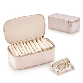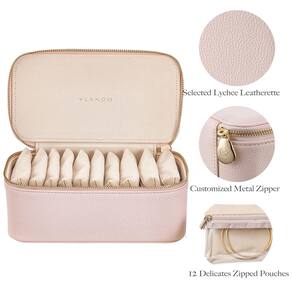 Vlando Organizador pequeno de caixa de joias de viagem – 7 bolsas pequenas com zíper para joias, colares, anéis, brincos, colar, armazenamento de triagem, malva rosa - Vlando Caixa de joias de viagem Macarons série 5ª geração: mais criativa, mais casual, mais livre no armazenamento e organização diários de joias. Sem regras ou restrições e sem limites sobre como você deve organizar suas joias - Material refinado e tremendo: o couro sintético sintético tátil e resistente resiste ao desgaste no uso diário. O novo interior selecionado de camurça sintética oferece cuidado ideal e proteção total para joias - Como guardar joias? O que você disser! Sem limites dentro da caixa. Apenas 12 bolsas delicadas com zíper para guardar todos os tipos de joias, como brincos, anéis, colares e assim por diante - Ótimo para carregar pequenas joias (brincos, anéis, colar, pulseiras, etc.) durante viagens. A capa de PVC facilita reconhecer e pegar as joias que você precisa depois de guardar na bolsa - Medidas: 21 x 12 x 8 cm. Embalagem de presente e pode ser uma escolha inteligente para presente de dia dos namorados, presente de aniversário, presente de Natal. Todas as meninas adoram, sem dúvida,