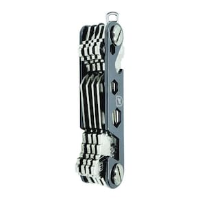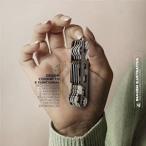 Para aumentar ainda mais sua versatilidade, o produto conta com uma alça prática que permite prender um mosquetão ou a chave do seu veículo, facilitando o transporte. A estrutura do organizador também integra dois tamanhos de chave de rosca, ideal para ajustes rápidos em bicicletas, móveis ou outros pequenos reparos.