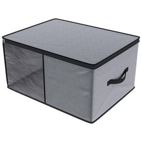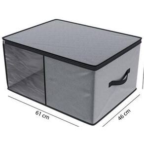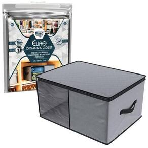 Organizador De Closet E Armários Para Cobertores Cinza A linha de organizadores da Euro Home foi projetada com base nas necessidades atuais de organização e design. O organizador para cobertas e edredons mantém as peças protegidas e seguras contra rasgos, manchas, mal cheiro e até traças. Este produto conta com o visor transparente para ajudar na hora de selecionar a peça desejada sem ser necessário ter que abrir o zíper. Devido ao seu design dobrável e retrátil, este produto se torna muito fácil de guardar quando não utilizado, sem ocupar muito espaço no armário. Conteúdo: 1 Organizador para cobertores Pesos Individuais: Organizador - 304 g Medidas Individuais: Fechado: 23,5 cm x 25 cm x 5 cm Aberto: 46 cm x 61 cm x 32 cm Composição: Poliéster / PVC / Zinco : 90 dias contra defeitos de fabricação Limpeza: Limpe com um pano ou espanador seco. Não utilize líquidos.