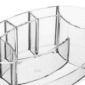 Organizador de Cosméticos em Acrílico com 8 Nichos – 18,5x7,5x7,5 cm Um organizador prático e elegante para manter seus produtos de beleza sempre em ordem! Características: ? Material: Acrílico resistente e transparente, perfeito para exibir seus cosméticos.? Dimensões: 18,5 cm (comprimento) x 7,5 cm (largura) x 7,5 cm (altura).? Design funcional: 8 nichos para organizar batons, pincéis, delineadores, esmaltes e mais.? Estilo moderno: Ideal para bancadas, penteadeiras ou viagens. Vantagens: ? Visualização fácil dos seus itens (nada se perde no fundo da gaveta!).? Economiza espaço e deixa tudo acessível.? Fácil de limpar – basta um pano úmido.