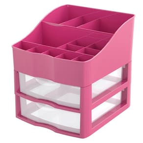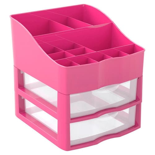 - 01 Kit Organizador de Cosméticos e Maquiagem 02 Gavetas Rosa