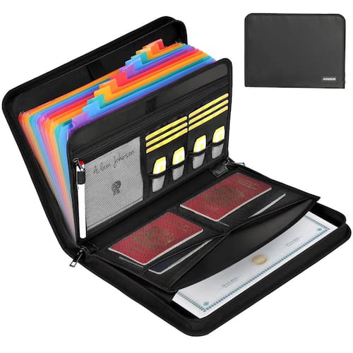 - Materiais avançados à prova de fogo: pode proteger seus arquivos importantes muito bem com nosso organizador de arquivos sanfonado à prova de fogo. Este organizador de arquivos à prova de fogo é feito de várias camadas de fibra de vidro de silicone resistente a altas temperaturas que podem suportar temperaturas de até 1,204 °C. O organizador de documentos com certificação SGS Test e UL94 oferecerão aos seus documentos importantes a máxima proteção segura em caso de incêndio. Aumente o nível de segurança de seus arquivos agora!