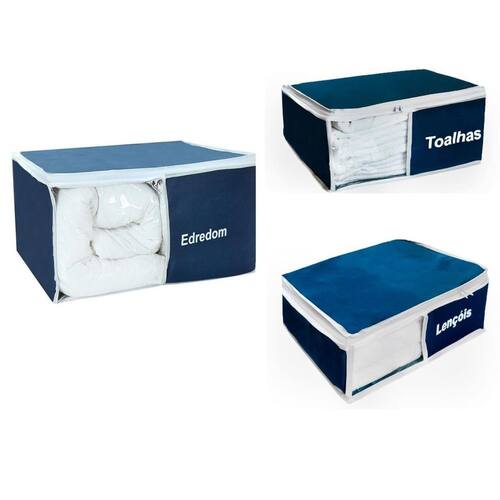 Organizador De Edredom Lençol Toalha Azul Marinho 3 Peças