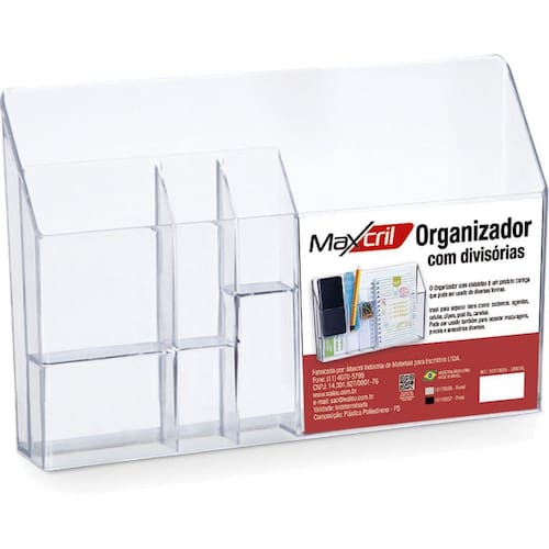 Organizador De Escritório Office Com Divisórias Cristal Organizador com divisórias - cristal linha office confeccionado em poliestireno o novo organizador com divisórias é um produto com design moderno e inovador exclusivo waleu. As cores cristal e fumê permitem a visualização dos objetos em seu interior. Podendo ser utilizado tanto fixado na parede, como na horizontal ou vertical de alguma superfície. São ideais para organização de documentos, cadernetas, canetas, celular, entre vários outros itens. Cor: cristal Medidas: 33.5 x 22 x 6cm cm Marca: Não Informado Ean: 7897294412663