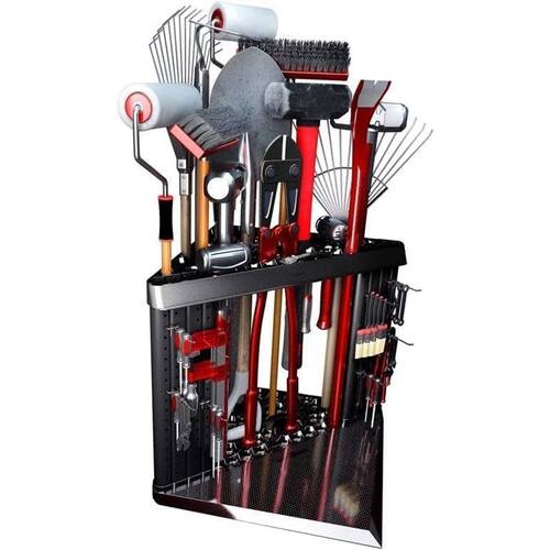 Organizador de Esquina PeerBasics para Herramientas, Organización para Garage, con capacidad para hasta 40 herramientas como palas, escobas, rastrillos, trapeadores, martillos y podadoras. Incluye panel de clavijas para colgar y organizar, montaje en pared y ganchos para herramientas. - ¡Características exclusivas que no encontrarás en ningún otro lugar! Otros organizadores de herramientas suelen caerse debido a su diseño cilíndrico endeble. Hemos invertido muchas horas en construir una estructura súper resistente para mantener el organizador estable, además incluimos tornillos para fijarlo a la pared y evitar que se caiga en la esquina, en tu garage o peor aún, sobre tu auto. - Capacidad para más de 40 herramientas: ningún otro organizador del mercado soporta hasta 40 herramientas grandes y 40 herramientas pequeñas. - Característica única de panel de clavijas: los organizadores de esquina son ideales para herramientas grandes, ¿pero qué pasa con las pequeñas? El diseño patentado de PeerBasics utiliza aún más espacio permitiendo colgar hasta 40 herramientas pequeñas en la parte frontal del organizador, personalizando la distribución a tu gusto. - No requiere herramientas para armar: fácil de montar en menos de 5 minutos, ¡más fácil que nunca para que te organices! - Hemos escuchado tus comentarios, este modelo está construido correctamente: nuestro nuevo diseño hace que el organizador sea más estable y soporte más herramientas. Fabricado en polipropileno resistente a impactos, no se pudre ni oxida.
