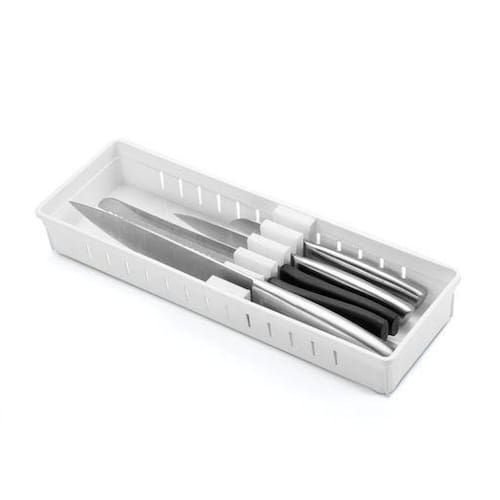 Com design inteligente, os organizadores aproveitam ao máximo o espaço das suas gavetas. Tem capacidade para armazenar com segurança até 5 facas. Compatível com lâminas de até 8 polegadas.