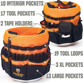 Organizador de balde de ferramentas malone com 64 bolsos da Rugged Tools – Lona de poliéster resistente com suporte de PVC 600D com 4 níveis de organização na frente e atrás e 10 bolsos internos. Organize facilmente mais de 100 ferramentas. Cabe em baldes padrão de 3,5 a 5 galões (balde e ferramentas não incluídos). 53,5 x 48 cm, forro de ferramentas dupla face com bolsos frontais e traseiros. Organizador de balde Malone com 64 bolsos, ferramentas robustas de 19 litros, para ferramentas grandes e pequenas para técnicos, eletricistas, encanadores, carpinteiros, tecnologia HVAC, ferramentas robustas, organizador de balde de ferramentas de 64 bolsos para baldes de 5 galões - bolsa de ferramentas - muitos bolsos Forro de balde de qualidade premium com bolsos mais profundos para organizar facilmente ferramentas manuais, ferramentas elétricas, furadeira e fita métrica. Inclui suporte expansível para bebidas. Características: Tecido resistente de lona de poliéster 600D com suporte de PVC Costura resistente - fio de peso industrial Bolsos e costuras reforçadas – camada dupla para evitar rasgos e rasgos. Espaço para organizar mais de 100 ferramentas: Interior (12 compartimentos para ferramentas): 10 bolsos para ferramentas + 2 alças para ferramentas + 1 alça de laço. Exterior (52 compartimentos para ferramentas): Camada 1 (inferior): 4 bolsos médios, 2 bolsos grandes, 2 bolsos grandes com fecho de aba Nível 2: 4 bolsos grandes, 1 bolso largo GG Nível 3: 17 bolsos para ferramentas, 1 bolso grande para ferramentas, 1 bolso expansível GG com fecho de aba, 1 bolso expansível GG para bebidas. Nível 4 (parte superior): 17 laços de ferramenta: 9 pequenos, 6 médios, 2 grandes Bônus: 1 laço de fita para rolos de fita, 1 clipe de barra de fita para fita métrica - Estrutura resistente – tecido de lona de poliéster resistente 600D com revestimento de PVC com costura resistente usando linha de peso industrial. Bolsos e costuras reforçadas com camadas duplas para evitar rasgos e rasgos. - 64 bolsos para organizar todas as suas ferramentas – 12 compartimentos internos para ferramentas e 52 compartimentos externos para ferramentas ajudam a organizar e transportar suas ferramentas, grandes e pequenas. A alça I loop para rolos de fita adesiva e um clipe de fita métrica feito especificamente tornam este um organizador perfeito para faz-tudo, elétricos, encanadores, etc. - Um ótimo presente – um presente perfeito para alguém em sua vida que é um faz-tudo ou gosta de trabalhar no jardim. Conhece alguém que precisa de ajuda para manter todas as suas ferramentas organizadas? Perfeito para Natal, aniversário, Dia dos Pais, etc. - Com as ferramentas robustas 100% de garantia de satisfação – Se você não estiver satisfeito com sua compra de ferramentas robustas por qualquer motivo, e nós resolveremos.