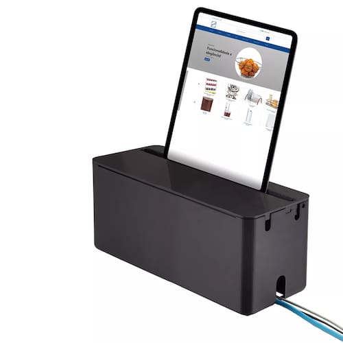 Organizador de Fios e Cabos Arthi - Solução para Régua de Energia A Caixa Organizadora de Fios, Cabos e Régua de Energia da Arthi (Ref. 5906) é a maneira mais inteligente e segura de esconder e organizar a bagunça de cabos, carregadores e réguas de energia. Seu design elegante garante que os fios fiquem sempre organizados e protegidos contra poeira. Características Físicas e Funcionais: Fios Organizados: Ideal para esconder a régua de energia e todo o excesso de fios e cabos de eletrônicos, promovendo um ambiente limpo e seguro (evitando tropeços ou acesso de animais/crianças). Suporte para Celular: Possui um suporte integrado na tampa para acomodar o celular ou tablet durante o carregamento, combinando organização de cabos e dispositivos em um só lugar. Sistema de Gerenciamento: Inclui aberturas laterais que permitem a entrada e saída dos fios de forma ordenada (simulação de corte para verificar como ficam os fios dentro do produto). Material Plástico: Fabricada em plástico resistente, é leve e fácil de limpar. Marca: Arthi (Ref. 5906). Especificações Técnicas: Funcionalidade: Caixa Organizadora de Cabos, Fios e Régua de Energia. Características Adicionais: Suporte para Celular/Tablet e Tampa. Dimensões (Fechada): Comprimento 30,5 X Largura 11 X Altura 12,4cm. Material: Plástico.