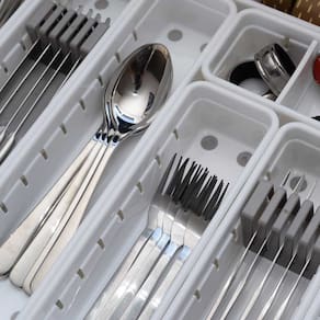 Organizador de gaveta. Este modelo de organizador vem com pés antiderrapantes, não escorrega ao abrir a gaveta e travas laterais para encaixar entre si. Organize sua casa com muito estilo e tudo com a qualidade e praticidade da marca Plasutil. Produzido em plástico polipropileno, material atóxico, livre de Bisfenol A (BPA Free). Excelente produto para organizar gavetas da maneira que desejar, resistente e de prático manuseio.