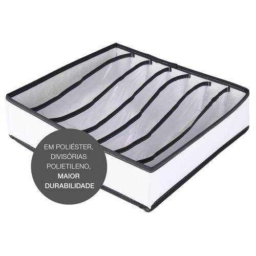 O Organizador Vizapi Exclusive 7 Divisórias Branco Cinza é ideal para quem deseja um produto com maior durabilidade para otimizar o espaço e a organização de armários e closets, com 7 nichos separadores, permite uma visualização e escolha mais rápida das suas peças. É a solução perfeita para organizar roupas íntimas, camisolas, pijamas e etc. Tamanho do Organizador: 33x31x9cm