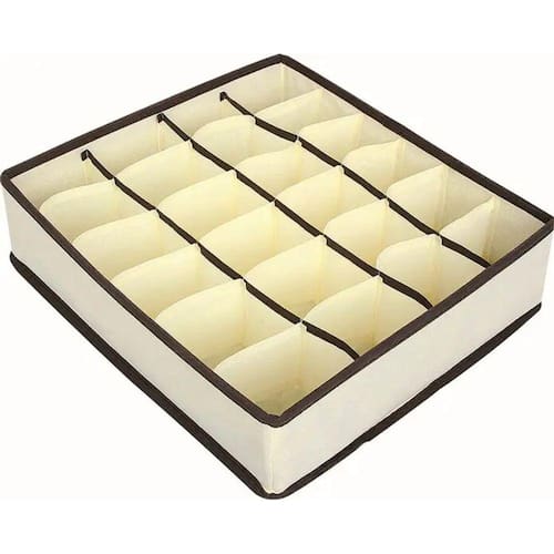 Organizador de peças íntimas, ideal para guardar roupas intimas, calcinhas, cuecas, meias e sutiãs sem bojo. Próprio para colocar em gavetas e armários aproveitando o espaço com organização e praticidade na hora de pegar alguma peça, além disso é durável e funcional.Características e especificações do Produto:- Material TNT reforçado- Bordas reforçadas- Resistente a humidade- Transpirável- 24 espaçosDimensões: 32 x 32 x 9 cm (C x L x A)-- INSTRUÇÕES- Abra o organizador.- Organize suas peças em cada espaço.- Guarde no local desejado.Itens inclusos01 Organizador de peças sutiã.