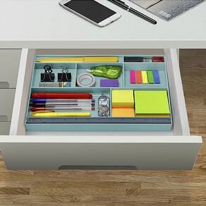Design elegante e funcional que economiza espaço ideal para organizar materiais do dia a dia como caneta, clips, régua, papel lembrete, corretivo, cola, tesoura, pen drive e outros objetos. Pode ser utilizado dentro da gaveta ou em cima da mesa de trabalho mantendo o ambiente organizado.