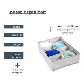 Organizador de Gavetas 8 Divisórias Roupas Intimas Pratico Organizador de Gaveta com 8 Divisórias - Prático e Compacto O Organizador de Gaveta com 8 Divisórias é a solução perfeita para manter suas roupas íntimas organizadas e sua gaveta mais bonita e funcional. Ele facilita a organização, permitindo que você encontre suas peças rapidamente, sem bagunça. Com laterais mais resistentes, pode ser empilhado quando necessário, otimizando ainda mais o espaço. Quando não estiver em uso, o organizador é dobrável, tornando-o fácil de guardar e armazenar. Benefícios: -organiza suas roupas íntimas de forma prática e eficiente -design dobrável, facilitando o armazenamento quando não estiver em uso -laterais resistentes para maior durabilidade -pode ser empilhado para otimizar o espaço em gavetas ou armários -deixa a gaveta mais bonita e visualmente arrumada Especificações: -material: TNT -medidas: -comprimento: 32cm -largura: 24cm -altura: 12cm -modelo: 8 Divisórias -cor enviada conforme disponibilidade Itens Enviados: -01 Organizador de Gaveta com 8 Divisórias Importante: -cor do produto enviada conforme disponibilidade em . Na Loja Compre Já Fácil, oferecemos uma experiência de compra simples e rápida, com produtos de alta qualidade e preços irresistíveis. Não perca tempo, visite nossa loja e garanta o seu Marca: Não Informado Ean: 7895244796931