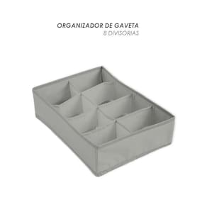 Organizador de Gaveta com 8 Divisórias Esse organizador é a melhor maneira de guardar suas roupas íntimas, deixando sua gaveta mais bonita visualmente e prática para encontrar suas peças. Tem as laterais mais resistentes, podem ser empilhados se necessário. Quando estiver fora de uso é fácil de guardar, pois é dobrável. ESPECIFICAÇÕES: Material: TNTMedidas: 32cm comprimento x 24cm largura x 12cm altura Modelo: 8 Divisórias *COR ENVIADA CONFORME DISPONIBILIDADE* CONTÉM: 01 Organizador de Gaveta com 8 Divisórias