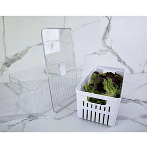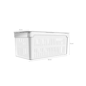 Organizador De Geladeira Acrílico Cesto De Drenagem 5 Litros O Organizador De Geladeira Com Cesto Clear Fresh 30 x 15 x 13cm é o novo padrão de transparência na organização da sua geladeira. Empilhe, encaixe e enxergue facilmente os alimentos armazenados na geladeira, mantendo tudo em ordem.