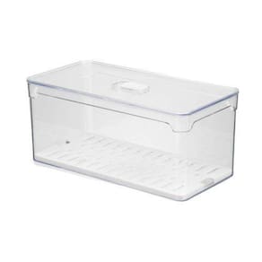 Organizador de geladeira com respiro na tampa transparente Organizador de geladeira com respiro na tampa 5l Cesto organizador que possuem furos para escorrer água, deste modo a aguá escorre para o fundo do pote e os alimentos dos cestos ficam menos úmidos. Organize a geladeira de forma correta e prática Capacidade do cesto organizador: 5 litrosProduto empilhável, cabe em qualquer espaço Características:Composição: plástico polipropileno e ps cristalDimensões do produto: 30 cm de comprimento x 15 cm de largura x 13 cm de alturaFabricante: arthiOrigem: nacional - produzido no brasil Compra segura e garantida Embalagem resistente que manterá a integridade do seu produto Produtos são enviados com nota fiscal Qualquer dúvida, teremos o maior prazer em lhe atender Tag: pote organizador, organizador geladeira, porte geladeira, ceta organizadora, porta mantimentos, pote com tampa, pode transparente, separador de agua, guardar comida, guardar legumes, guardar vegetais, guardar frutas, empilhavel