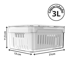 Organizador De Geladeira Em Acrílico Com Tampa E Drenagem 2,5L O mais completo, organizador de geladeira com tampa e escorredor interno, para manter seu refrigerador sempre em ordem e seus alimentos higienizados.