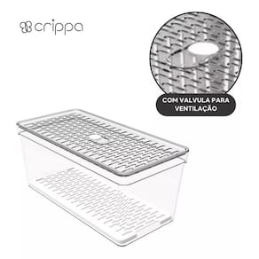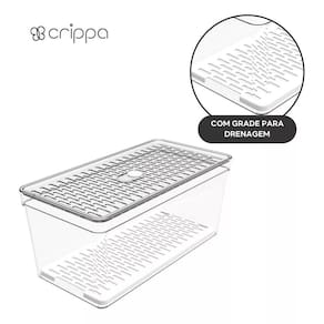 Organizador de geladeira grande frutas legumes com grade ========== sobre o produto ========== O organizador de geladeira grande frutas legumes é a solução ideal para manter seus alimentos frescos e organizados por mais tempo. Com um design inteligente, ele conta com uma grade removível que permite melhor circulação de ar, evitando o acúmulo de umidade e prolongando a vida útil de frutas, legumes e verduras. Feito em plástico transparente de alta qualidade, ele facilita a visualização do conteúdo, ajudando a otimizar o espaço da geladeira e mantendo tudo ao seu alcance de forma prática e higiênica. Este organizador é essencial para quem busca eficiência na cozinha e quer garantir mais frescor aos alimentos. ========== especificações ========== Grade removível, que facilita a ventilação e evita o acúmulo de umidade. Ideal para armazenar frutas, legumes e verduras com segurança. Material plástico transparente de alta durabilidade, fácil de limpar. Design grande e prático, otimiza o espaço interno da geladeira. ========== ficha técnica ========== Medidas: 30,5 x 15,5 x 13,5 cm Material: poliestireno ps + polipropileno pp Marca: crippa : 3 meses Estamos online para quaisquer dúvidas, Agradecemos e aguardamos o seu pedido. P: o grade é removível para facilitar a limpeza R: sim, o cesto é removível, facilitando a limpeza e ventilação dos alimentos. P: posso armazenar outros tipos de alimentos além de frutas e legumes R: sim, o organizador é versátil e pode ser para diversos alimentos, como queijos, frios e embutidos. P: é seguro para contato com alimentos R: sim, o material plástico é seguro para armazenar alimentos e fácil de higienizar. P: o produto é novo ou Marca: Não Informado