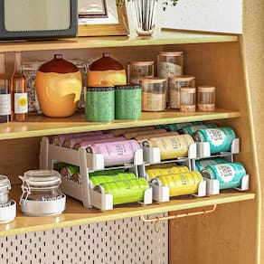 O organizador comporta até 9 latas padrão (350ml), proporcionando um armazenamento adequado para quem quer reduzir a desordem na geladeira. Conforme você retira as latas do andar inferior, as que estão no andar superior rolam para baixo.
