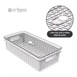 Organizador de geladeira médio frutas legumes com cesto ========== sobre o produto ========== O organizador de geladeira médio frutas legumes com cesto é a solução ideal para manter seus alimentos frescos e organizados por mais tempo. Com um design inteligente, ele conta com um cesto removível que permite melhor circulação de ar, evitando o acúmulo de umidade e prolongando a vida útil de frutas, legumes e verduras. Feito em plástico transparente de alta qualidade, ele facilita a visualização do conteúdo, ajudando a otimizar o espaço da geladeira e mantendo tudo ao seu alcance de forma prática e higiênica. Este organizador é essencial para quem busca eficiência na cozinha e quer garantir mais frescor aos alimentos. ========== especificações ========== Cesto removível, que facilita a ventilação e evita o acúmulo de umidade. Ideal para armazenar frutas, legumes e verduras com segurança. Material plástico transparente de alta durabilidade, fácil de limpar. Design grande e prático, otimiza o espaço interno da geladeira. ========== ficha técnica ========== Medidas: 30,5 x 15,5 x 8cm Material: poliestireno ps + polipropileno pp Marca: crippa : 3 meses Estamos online para quaisquer dúvidas, Agradecemos e aguardamos o seu pedido. P: o cesto é removível para facilitar a limpeza R: sim, o cesto é removível, facilitando a limpeza e ventilação dos alimentos. P: posso armazenar outros tipos de alimentos além de frutas e legumes R: sim, o organizador é versátil e pode ser para diversos alimentos, como queijos, frios e embutidos. P: é seguro para contato com alimentos R: sim, o material plástico é seguro para armazenar alimentos e fácil de higienizar. P: o produto é novo ou Marca: Não Informado