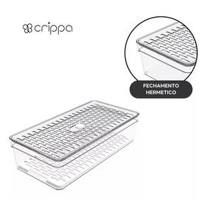 Organizador de geladeira médio frutas legumes com grade ========== sobre o produto ========== O organizador de geladeira médio frutas legumes com grade é a solução ideal para manter seus alimentos frescos e organizados por mais tempo. Com um design inteligente, ele conta com uma grade removível que permite melhor circulação de ar, evitando o acúmulo de umidade e prolongando a vida útil de frutas, legumes e verduras. Feito em plástico transparente de alta qualidade, ele facilita a visualização do conteúdo, ajudando a otimizar o espaço da geladeira e mantendo tudo ao seu alcance de forma prática e higiênica. Este organizador é essencial para quem busca eficiência na cozinha e quer garantir mais frescor aos alimentos. ========== especificações ========== Grade removível, que facilita a ventilação e evita o acúmulo de umidade. Ideal para armazenar frutas, legumes e verduras com segurança. Material plástico transparente de alta durabilidade, fácil de limpar. Design grande e prático, otimiza o espaço interno da geladeira. ========== ficha técnica ========== Medidas: 30,5 x 15,5 x 8cm Material: poliestireno ps + polipropileno pp Marca: crippa : 3 meses Estamos online para quaisquer dúvidas, Agradecemos e aguardamos o seu pedido. P: a grade é removível para facilitar a limpeza R: sim, o cesto é removível, facilitando a limpeza e ventilação dos alimentos. P: posso armazenar outros tipos de alimentos além de frutas e legumes R: sim, o organizador é versátil e pode ser para diversos alimentos, como queijos, frios e embutidos. P: é seguro para contato com alimentos R: sim, o material plástico é seguro para armazenar alimentos e fácil de higienizar. P: o produto é novo ou Marca: Não Informado