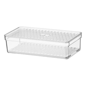 Organizador de geladeira médio frutas legumes com grade ========== sobre o produto ========== O organizador de geladeira médio frutas legumes com grade é a solução ideal para manter seus alimentos frescos e organizados por mais tempo. Com um design inteligente, ele conta com uma grade removível que permite melhor circulação de ar, evitando o acúmulo de umidade e prolongando a vida útil de frutas, legumes e verduras. Feito em plástico transparente de alta qualidade, ele facilita a visualização do conteúdo, ajudando a otimizar o espaço da geladeira e mantendo tudo ao seu alcance de forma prática e higiênica. Este organizador é essencial para quem busca eficiência na cozinha e quer garantir mais frescor aos alimentos. ========== especificações ========== Grade removível, que facilita a ventilação e evita o acúmulo de umidade. Ideal para armazenar frutas, legumes e verduras com segurança. Material plástico transparente de alta durabilidade, fácil de limpar. Design grande e prático, otimiza o espaço interno da geladeira. ========== ficha técnica ========== Medidas: 30,5 x 15,5 x 8cm Material: poliestireno ps + polipropileno pp Marca: crippa : 3 meses Estamos online para quaisquer dúvidas, Agradecemos e aguardamos o seu pedido. P: a grade é removível para facilitar a limpeza R: sim, o cesto é removível, facilitando a limpeza e ventilação dos alimentos. P: posso armazenar outros tipos de alimentos além de frutas e legumes R: sim, o organizador é versátil e pode ser para diversos alimentos, como queijos, frios e embutidos. P: é seguro para contato com alimentos R: sim, o material plástico é seguro para armazenar alimentos e fácil de higienizar. P: o produto é novo ou Marca: Não Informado