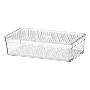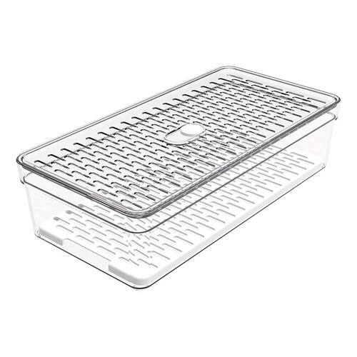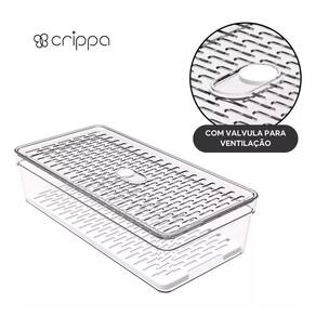 Organizador de geladeira médio frutas legumes com grade ========== sobre o produto ========== O organizador de geladeira médio frutas legumes com grade é a solução ideal para manter seus alimentos frescos e organizados por mais tempo. Com um design inteligente, ele conta com uma grade removível que permite melhor circulação de ar, evitando o acúmulo de umidade e prolongando a vida útil de frutas, legumes e verduras. Feito em plástico transparente de alta qualidade, ele facilita a visualização do conteúdo, ajudando a otimizar o espaço da geladeira e mantendo tudo ao seu alcance de forma prática e higiênica. Este organizador é essencial para quem busca eficiência na cozinha e quer garantir mais frescor aos alimentos. ========== especificações ========== Grade removível, que facilita a ventilação e evita o acúmulo de umidade. Ideal para armazenar frutas, legumes e verduras com segurança. Material plástico transparente de alta durabilidade, fácil de limpar. Design grande e prático, otimiza o espaço interno da geladeira. ========== ficha técnica ========== Medidas: 30,5 x 15,5 x 8cm Material: poliestireno ps + polipropileno pp Marca: crippa : 3 meses Estamos online para quaisquer dúvidas, Agradecemos e aguardamos o seu pedido. P: a grade é removível para facilitar a limpeza R: sim, o cesto é removível, facilitando a limpeza e ventilação dos alimentos. P: posso armazenar outros tipos de alimentos além de frutas e legumes R: sim, o organizador é versátil e pode ser para diversos alimentos, como queijos, frios e embutidos. P: é seguro para contato com alimentos R: sim, o material plástico é seguro para armazenar alimentos e fácil de higienizar. P: o produto é novo ou Marca: Não Informado