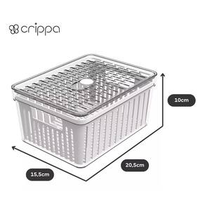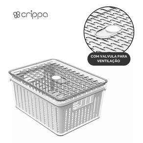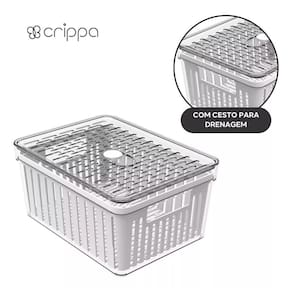 Organizador de geladeira pequenho frutas legumes com cesto ========== sobre o produto ========== O organizador de geladeira pequeno frutas legumes com cesto é a solução ideal para manter seus alimentos frescos e organizados por mais tempo. Com um design inteligente, ele conta com um cesto removível que permite melhor circulação de ar, evitando o acúmulo de umidade e prolongando a vida útil de frutas, legumes e verduras. Feito em plástico transparente de alta qualidade, ele facilita a visualização do conteúdo, ajudando a otimizar o espaço da geladeira e mantendo tudo ao seu alcance de forma prática e higiênica. Este organizador é essencial para quem busca eficiência na cozinha e quer garantir mais frescor aos alimentos. ========== especificações ========== Cesto removível, que facilita a ventilação e evita o acúmulo de umidade. Ideal para armazenar frutas, legumes e verduras com segurança. Material plástico transparente de alta durabilidade, fácil de limpar. Design compacto e prático, otimiza o espaço interno da geladeira. ========== ficha técnica ========== Medidas: 20,5 x 15,5 x 10cm Material: poliestireno ps + polipropileno pp Marca: crippa : 3 meses Estamos online para quaisquer dúvidas, Agradecemos e aguardamos o seu pedido. P: o cesto é removível para facilitar a limpeza R: sim, o cesto é removível, facilitando a limpeza e ventilação dos alimentos. P: posso armazenar outros tipos de alimentos além de frutas e legumes R: sim, o organizador é versátil e pode ser para diversos alimentos, como queijos, frios e embutidos. P: é seguro para contato com alimentos R: sim, o material plástico é seguro para armazenar alimentos e fácil de higienizar. P: o produto é novo ou Marca: Não Informado