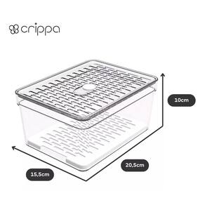 Organizador de geladeira pequenho frutas legumes com grade ========== sobre o produto ========== O organizador de geladeira pequeno com grade é a solução ideal para manter seus alimentos frescos e organizados por mais tempo. Com um design inteligente, ele conta com uma grade removível que permite melhor circulação de ar, evitando o acúmulo de umidade e prolongando a vida útil de frutas, legumes e verduras. Feito em plástico transparente de alta qualidade, ele facilita a visualização do conteúdo, ajudando a otimizar o espaço da geladeira e mantendo tudo ao seu alcance de forma prática e higiênica. Este organizador é essencial para quem busca eficiência na cozinha e quer garantir mais frescor aos alimentos. ========== especificações ========== Grade removível, que facilita a ventilação e evita o acúmulo de umidade. Ideal para armazenar frutas, legumes e verduras com segurança. Material plástico transparente de alta durabilidade, fácil de limpar. Design compacto e prático, otimiza o espaço interno da geladeira. ========== ficha técnica ========== Medidas: 20,5 x 15,5 x 10cm Material: poliestireno ps + polipropileno pp Marca: crippa : 3 meses Estamos online para quaisquer dúvidas, Agradecemos e aguardamos o seu pedido. P: a grade é removível para facilitar a limpeza R: sim, o cesto é removível, facilitando a limpeza e ventilação dos alimentos. P: posso armazenar outros tipos de alimentos além de frutas e legumes R: sim, o organizador é versátil e pode ser para diversos alimentos, como queijos, frios e embutidos. P: é seguro para contato com alimentos R: sim, o material plástico é seguro para armazenar alimentos e fácil de higienizar. P: o produto é novo ou Marca: Não Informado