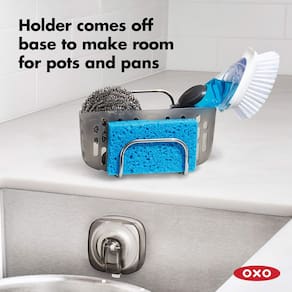 Organizador de louças de sucção OXO Good Grips Stronghold para cozinha - Plástico, cinza, tamanho único - O cesto de grande capacidade contém esponjas grandes, pincéis de prato e muito mais - O gancho conveniente fornece fácil acesso à sua esponja ou escova favorita - O suporte removível sai da base de sucção para abrir mais espaço dentro da pia da cozinha enquanto lava itens grandes - As ventosas de fixação forte sem ftalatos são ativadas com o toque de uma alavanca - Drenagem As ranhuras permitem uma secagem rápida - Laváveis na máquina de lavar louça - The OXO Better: há mais de 25 anos, fabricamos ferramentas que encante e supere as expectativas. Se você não estiver satisfeito com sua compra, queremos saber mais sobre isso. Vamos substituí-lo ou reembolsá-lo, porque estamos aqui para torná-lo melhor. - Nota: Para obter melhores resultados, use em pias de aço inoxidável. Não recomendado para uso com superfícies texturizadas ou porosas, incluindo algumas pedras, acrílico ou metal. .