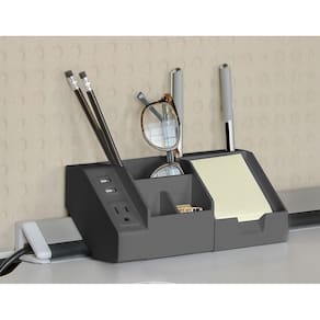 Porta-lápis amplo Bostitch Office, organizador de mesa, tampa e divisórias removíveis, cinza (cinza KT-WCUP)