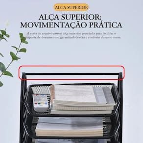 O Organizador de Mesa com 4 Bandejas Metálicas é perfeito para quem busca praticidade e um ambiente mais produtivo. Com estrutura reforçada e bandejas deslizantes, ele oferece fácil acesso aos seus documentos, livros, cadernos ou folhas A4.