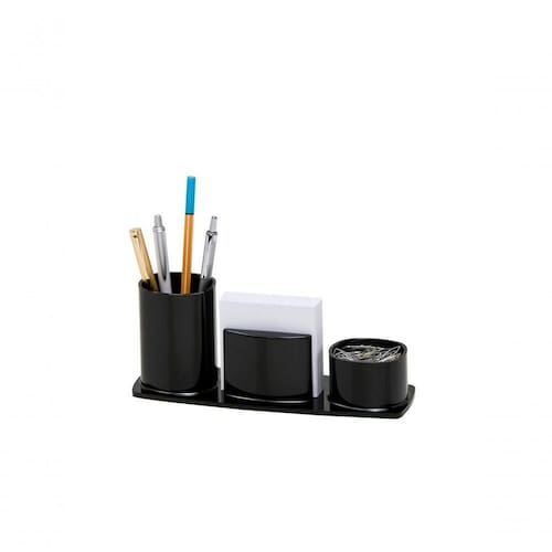 Porta lápis/clips/lembrete Millennium. Fabricado em poliestireno, é uma peça única. Espessura de parede de 3mm garante alta resistência e durabilidade. Perfeita estabilidade sobre a mesa. Acabamento perfeito. Design moderno. Acompanha papel lembrete branco.