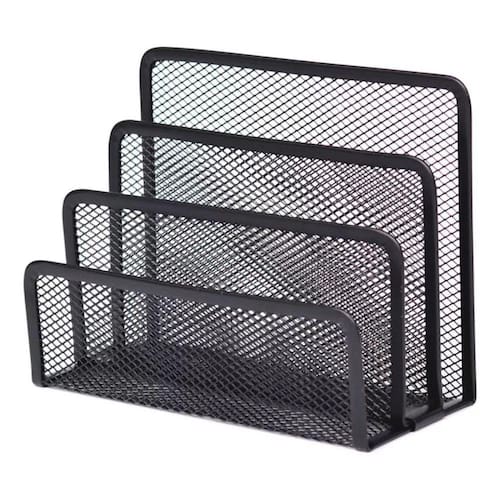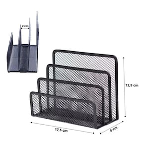 É um objeto utilizado para armazenar e organizar documentos, papéis e outros itens em sua mesa ou escritório. Feito de metal resistente, o suporte possui três compartimentos separados, cada um projetado para segurar diferentes tipos de papeis. Item prático e funcional para manter seus papéis e documentos organizados em seu espaço de trabalho, facilitando o acesso e a produtividade.