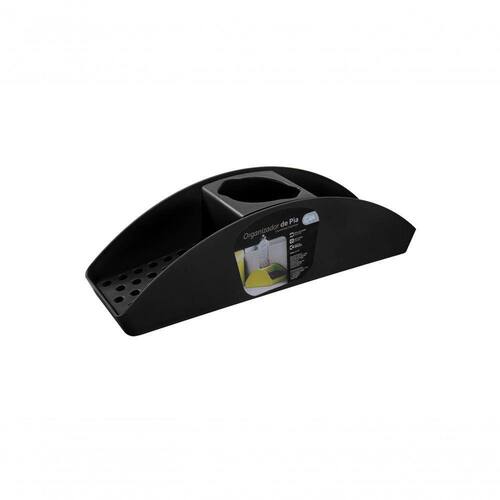 Organizador De Pia Basic 32,2 X 8,6 X 9,1 Cm Preto Coza Com um design moderno e descolado, o organizador de pia da linha Sobre a Pia acomoda o detergente de louças, o sabão e a esponja em um único recipiente. Nas cores modernas preto, vermelho, verde, branco e l, é formado por duas peças, facilitando na hora de limpá-lo. Além disso, seu design é ideal para não deixar acumular água, com furos na base superior, evitando o desperdício de sabão e ajudando a organizar a cozinha. Material - Polipropileno Linha - Sobre a Pia PP Composição - 01 Organizador de Pia Garantia - 90 dias para vícios e defeitos de fabricação. Conteúdo Especial -