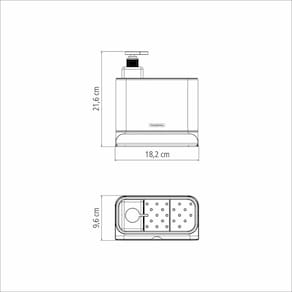 - Medidas totais: 21,6cm A x 18,2cm L x 9,6cm P;