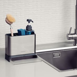 Mantenha sua pia impecável com o Organizador Plurale Tramontina, a solução inteligente para armazenar detergente e esponja com design moderno e funcional. Desenvolvido em posição vertical, otimiza o espaço da sua bancada. Possui uma prática bandeja de gotejamento que permite o fluxo de ar, facilitando a remoção eficiente da água e evitando o acúmulo de umidade.