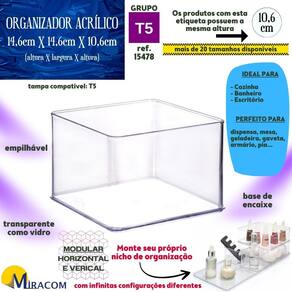 - Super versátil: Os organizadores se encaixam em qualquer espaço, seja ele vertical ou horizontal. A base de cada organizador serve como tampa para o item semelhante que estiver alinhado imediatamente abaixo;
