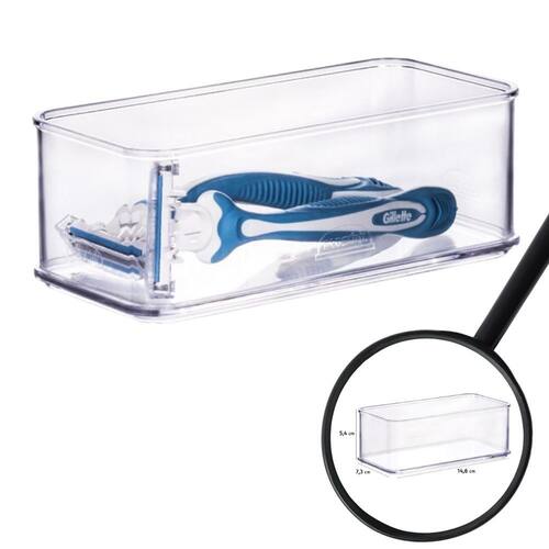 Dimensões e combinações milimétricas: Os tamanhos (comprimento e profundidade) dos organizadores formam um padrão único no mercado porque são produzidos com intervalos de 7,3cm, ou seja, são múltiplos de 7,3cm, o que faz com que formem um nicho perfeito com diferentes espaços de organização em um só lugar, dependendo da sua necessidade. Basta definir o espaço que deseja organizar e escolher o tamanho de cada caixa organizadora para formá-lo. Próprio para organização de objetos de diversos tamanhos.